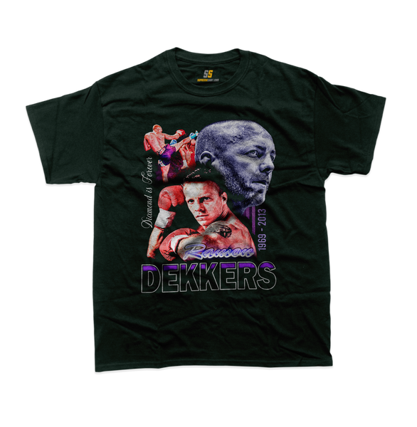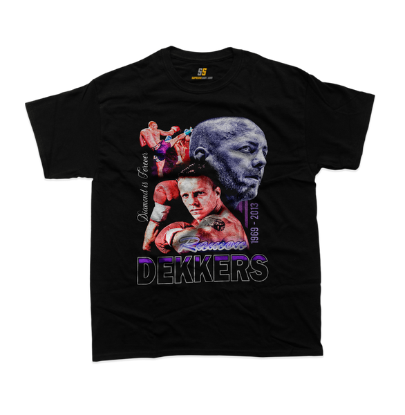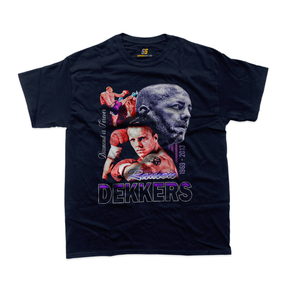 Honor the legacy of a true combat sports icon with this **Ramon Dekkers** tribute t-shirt. Known as "The Diamond," Dekkers was an eight-time Muay Thai world champion and the first foreigner to be named "Muay Thai Fighter of the Year" in Thailand.